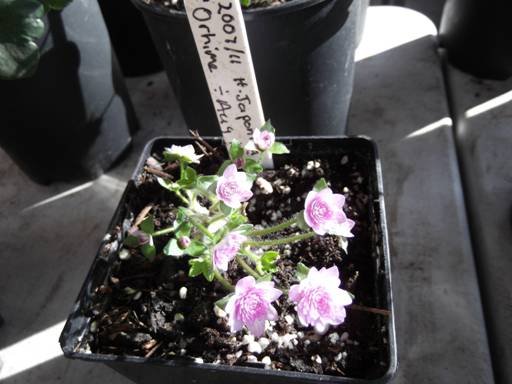 If you prefer pastel shades Hepatica nobilis var. pyrenaica is an excellent choice. The distinctly marbled foliage remains in good condition until the next year’s flowers bloom prolifically, often as early as January. The colours range from white through apple blossom pink to powder blue. I have a violet blue centred one fading towards the edge of the petals which I am especially fond of. It is one of many I am propagating for our local Plant Heritage plant sales. |